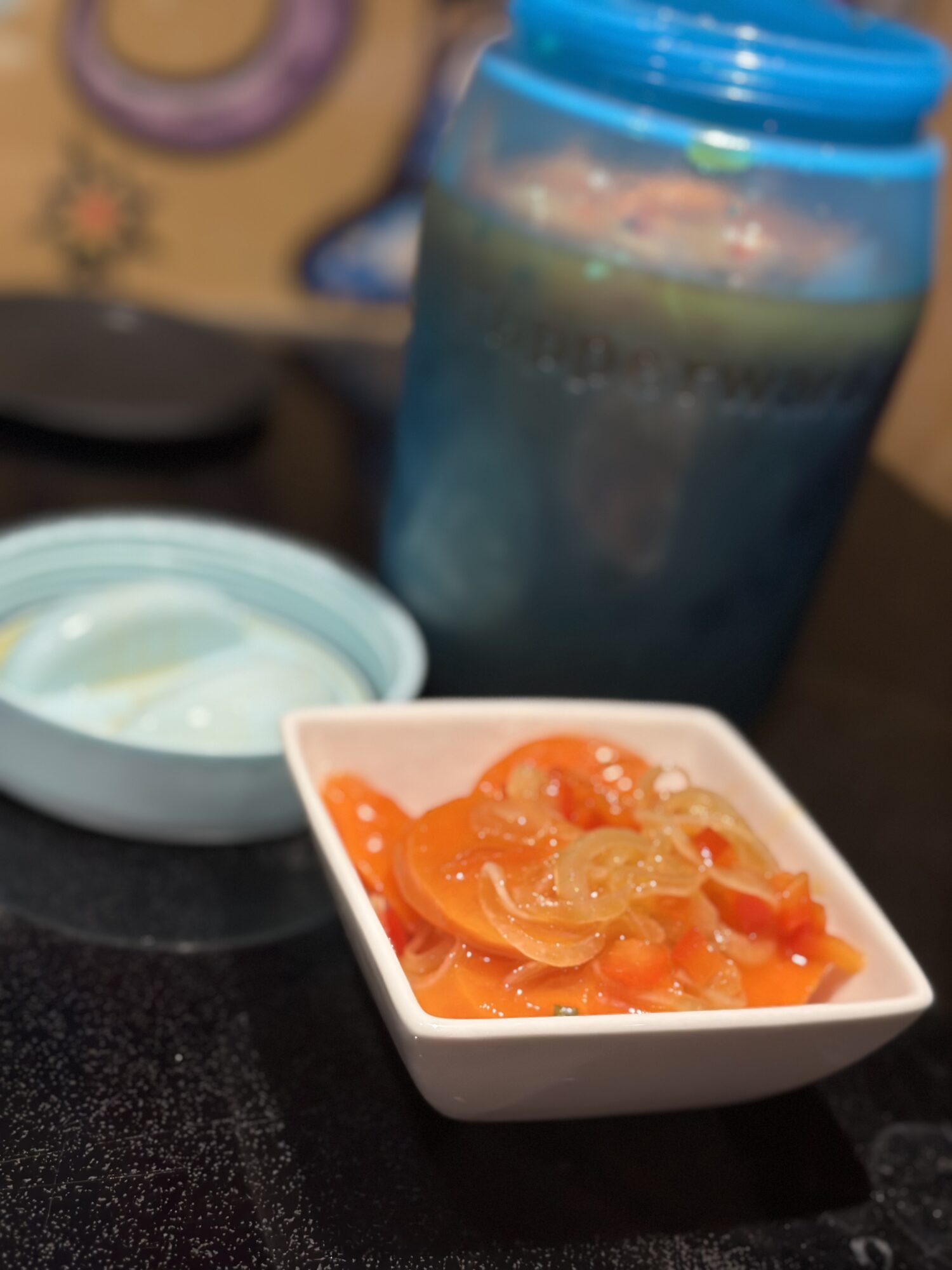 Une fois cuites, égoutter les carottes et les déposer dans votre plat à marinades préféré (vous pouvez les diviser dans différents contenants)