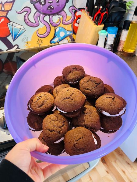 Glacer généreusement et mettre un autre petit gâteau. (faire une sandwich avec).