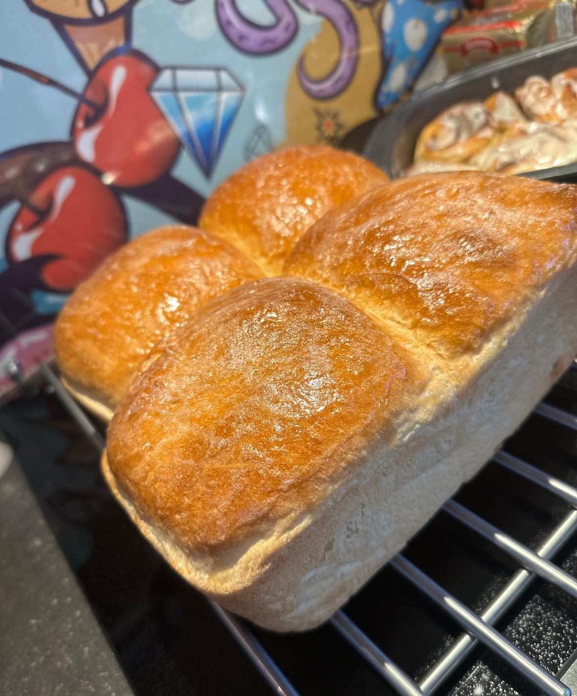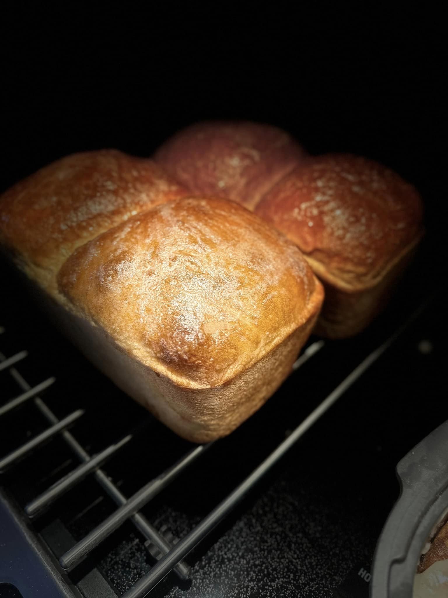À leur sortie du four, faire fondre une noix de beurre sur la croute. Démouler les pains et les laisser refroidir.